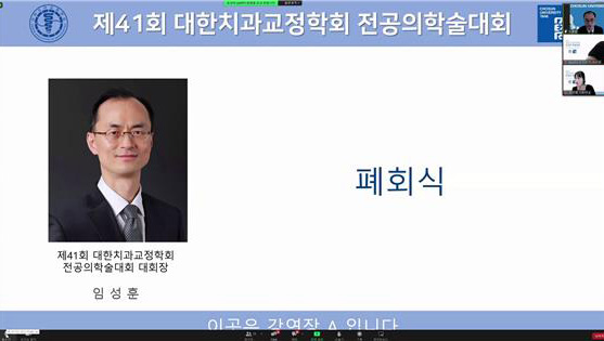 대한치과교정학회 백승학 회장은 “여러 어려운 여건에서도 훌륭하게 준비해 준 조선대학교 임성훈 교수님 이하 여러 관계자들께 감사하다. 오늘 발표한 전공의 선생님들에게 오늘 하루가 인생에서 가장 멋진 하루로 기억되기를 기원한다” 며 감사 인사를 전했습니다.