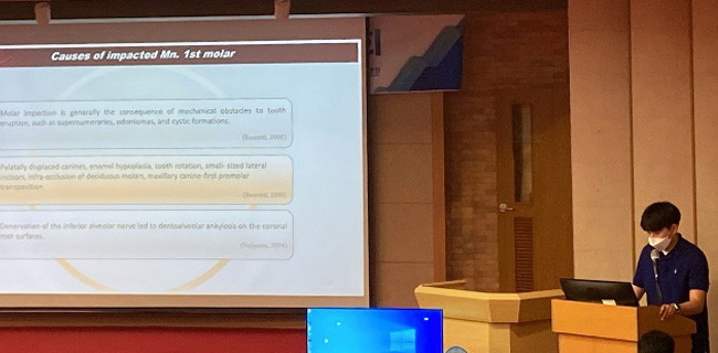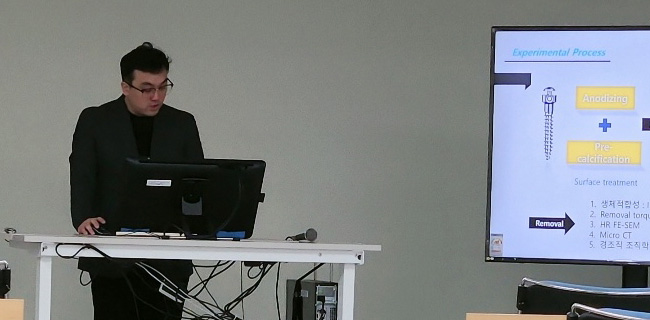전공의 3년차 원은규 선생(논문 주제 : Effect of zoledronate treatment on osseointegration of Ti-6Al-4V alloy orthodontic miniscrew treated with anodization and pre-calcification)과 황조연 선생(논문 주제 : Effect of romosozumab on osseointegration of Ti-6Al-4V alloy orthodontic miniscrew)이 박사 학위 논문에 대한 공개발표를 하였다.