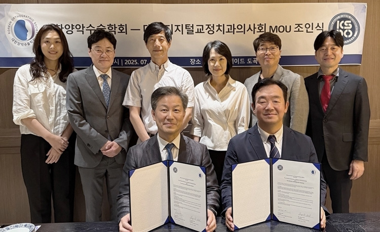 대한양악수술학회(회장 허종기)는 지난 7월 17일 대한디지털교정치과의사회(회장 배기선)와 상호 교류 확대를 위한 업무협약을 체결하였다. 양 기관은 부정교합의 외과적 치료와 디지털 교정의 융합을 위해 전략적 파트너십을 구축하기로 했으며, 연자 교류 및 공동 임상 연구 등 협력 범위를 점진적으로 확대하기로 뜻을 모았다.
