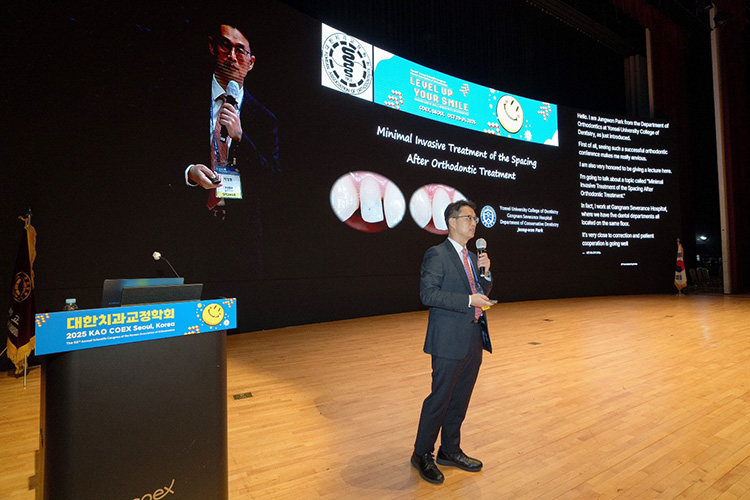 박정원 교수(연세대학교 치과보존학교실)는 “Minimal Invasive Treatment of the Spacing after Orthodontic Treatment”라는 주제의 강연에서 교정적인 이동을 통해 공간의 배치를 결정하고 최소 침습적인 레진 수복을 통해 더 심미적인 결과를 얻을 수 있는 방법에 대해 설명하였습니다.